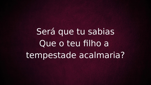 - Será que tu sabiasQue o teu filho a tempestade acalmaria?