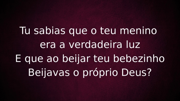 - Tu sabias que o teu menino era a verdadeira luzE que ao beijar teu bebezinhoBeijavas o próprio Deus?