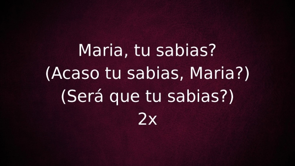 - Maria, tu sabias?(Acaso tu sabias, Maria?)(Será que tu sabias?)2x