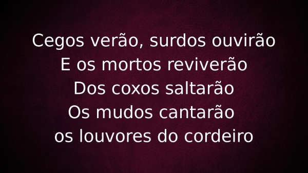 - Cegos verão, surdos ouvirãoE os mortos reviverãoDos coxos saltarãoOs mudos cantarão os louvores do cordeiro