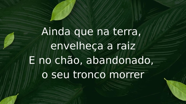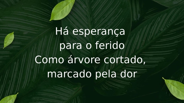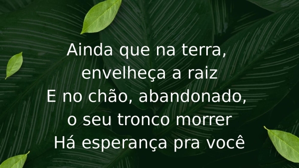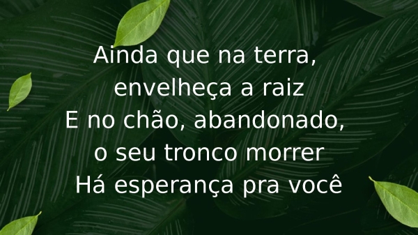 - Ainda que na terra, envelheça a raizE no chão, abandonado, o seu tronco morrerHá esperança pra você