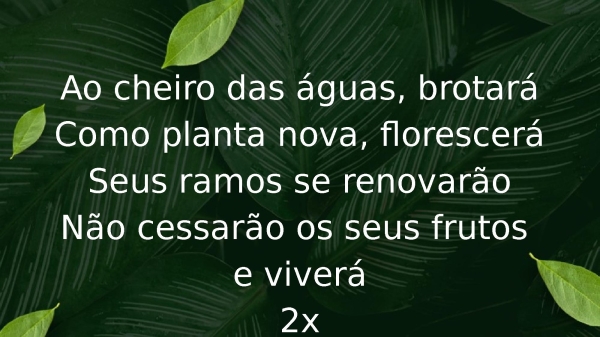 - Ao cheiro das águas, brotaráComo planta nova, floresceráSeus ramos se renovarãoNão cessarão os seus frutos e viverá2x