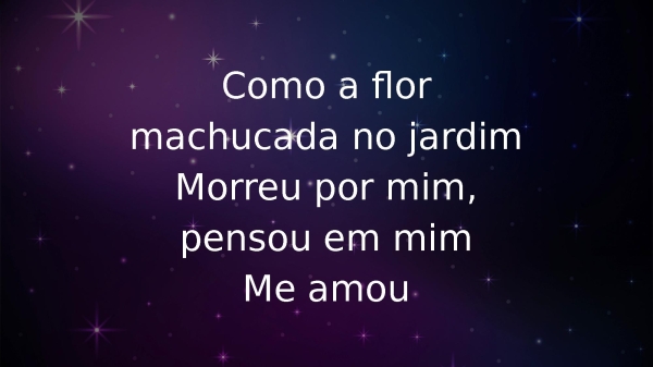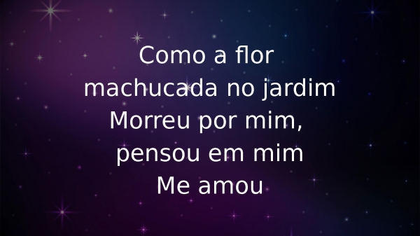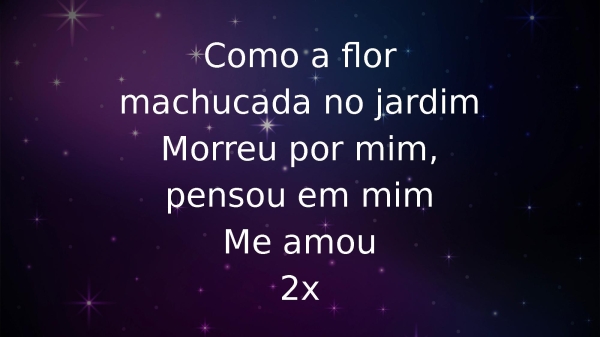 - Como a flormachucada no jardimMorreu por mim,pensou em mimMe amou2x
