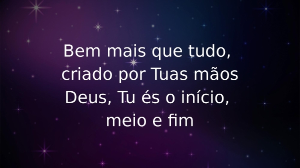 - Bem mais que tudo, criado por Tuas mãosDeus, Tu és o início, meio e fim
