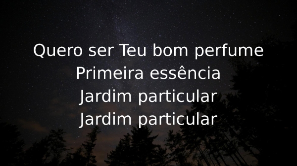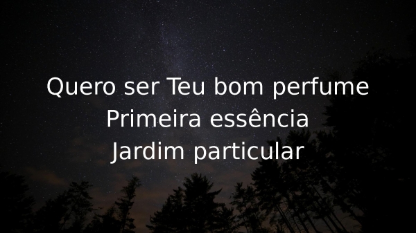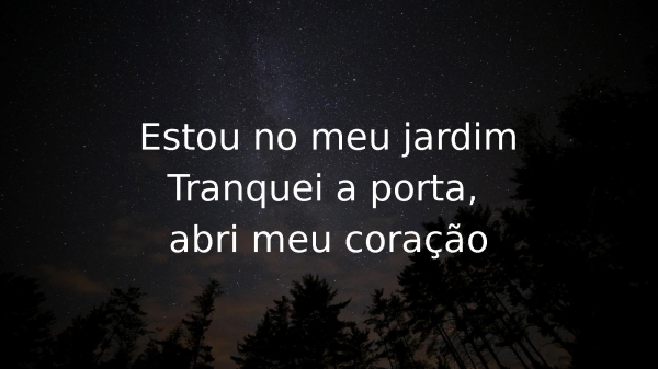 - Estou no meu jardimTranquei a porta, abri meu coração