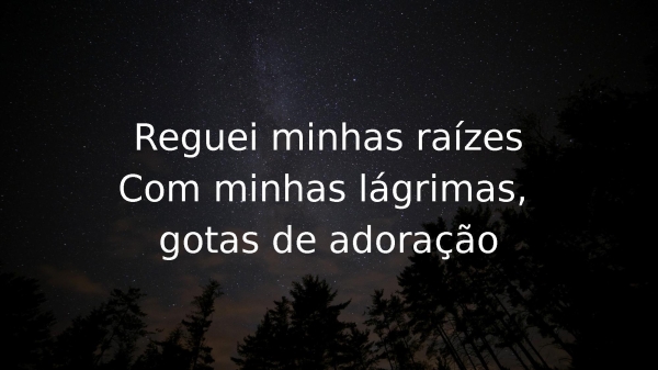 - Reguei minhas raízesCom minhas lágrimas, gotas de adoração