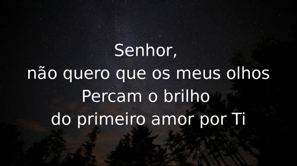 - Senhor, não quero que os meus olhosPercam o brilho do primeiro amor por Ti