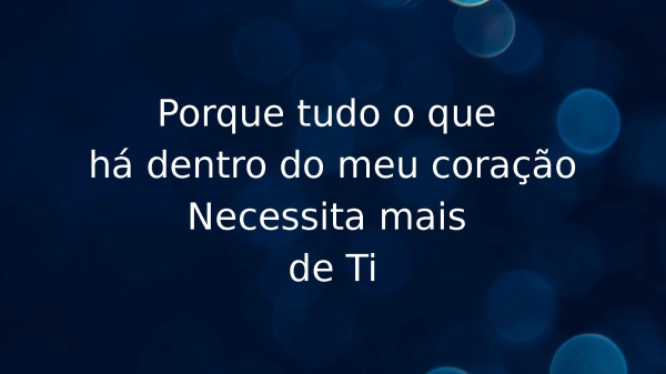 - Porque tudo o que há dentro do meu coraçãoNecessita mais de Ti