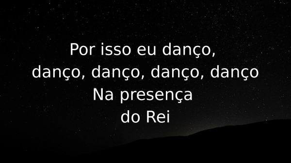 - Por isso eu danço, danço, danço, danço, dançoNa presença do Rei