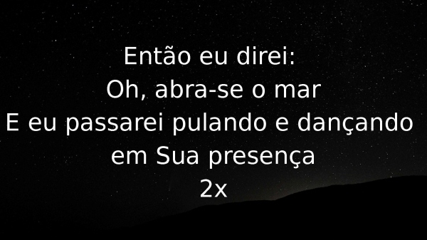 - Então eu direi: Oh, abra-se o marE eu passarei pulando e dançando em Sua presença2x