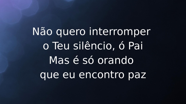 - Não quero interromper o Teu silêncio, ó PaiMas é só orando que eu encontro paz
