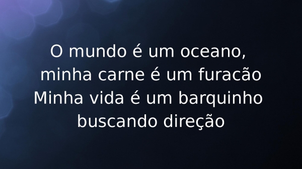 - O mundo é um oceano, minha carne é um furacãoMinha vida é um barquinho buscando direção