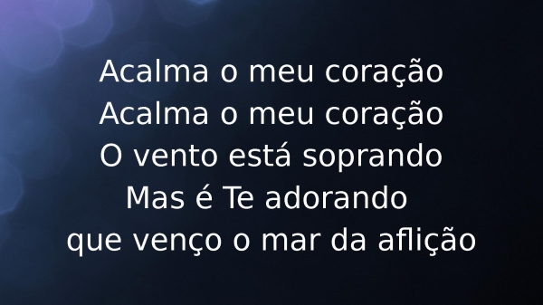 - Acalma o meu coraçãoAcalma o meu coraçãoO vento está soprandoMas é Te adorando que venço o mar da aflição