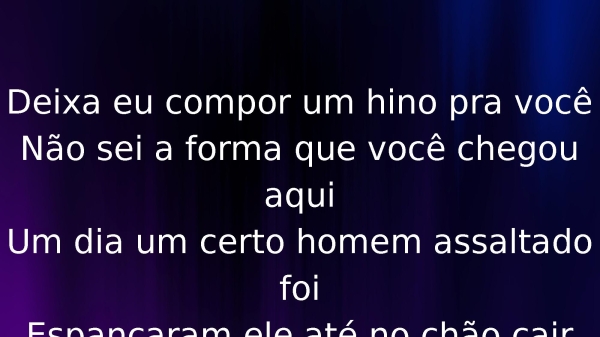 - Deixa eu compor um hino pra vocêNão sei a forma que você chegou aquiUm dia um certo homem assaltado foiEspancaram ele até no chão cair