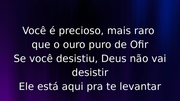 - Você é precioso, mais raro que o ouro puro de OfirSe você desistiu, Deus não vai desistirEle está aqui pra te levantar