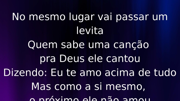 - No mesmo lugar vai passar um levitaQuem sabe uma canção pra Deus ele cantouDizendo: Eu te amo acima de tudoMas como a si mesmo, o próximo ele não amou