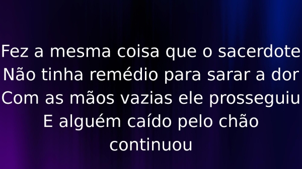- Fez a mesma coisa que o sacerdoteNão tinha remédio para sarar a dorCom as mãos vazias ele prosseguiuE alguém caído pelo chão continuou