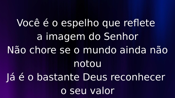- Você é o espelho que reflete a imagem do SenhorNão chore se o mundo ainda não notouJá é o bastante Deus reconhecer o seu valor