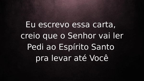 - Eu escrevo essa carta, creio que o Senhor vai lerPedi ao Espírito Santo pra levar até Você