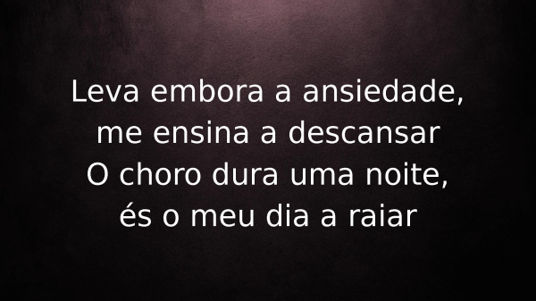 - Leva embora a ansiedade,me ensina a descansarO choro dura uma noite,és o meu dia a raiar