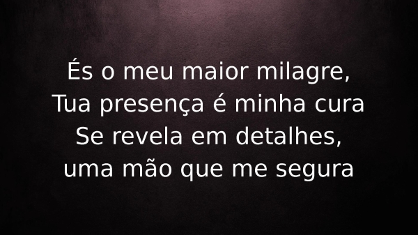 - És o meu maior milagre,Tua presença é minha curaSe revela em detalhes,uma mão que me segura