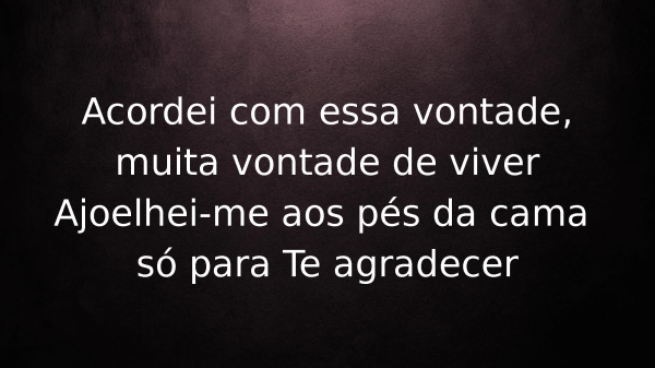 - Acordei com essa vontade,muita vontade de viverAjoelhei-me aos pés da cama só para Te agradecer