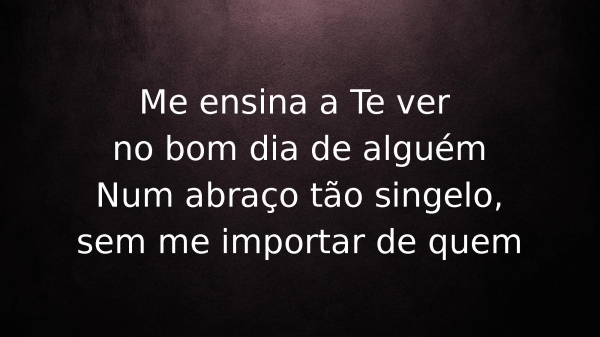 - Me ensina a Te ver no bom dia de alguémNum abraço tão singelo,sem me importar de quem