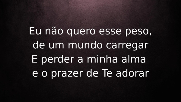 - Eu não quero esse peso,de um mundo carregarE perder a minha alma e o prazer de Te adorar