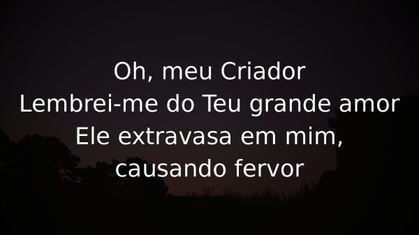 - Oh, meu CriadorLembrei-me do Teu grande amorEle extravasa em mim,causando fervor
