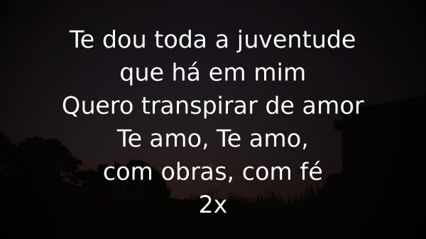 - Te dou toda a juventude que há em mimQuero transpirar de amorTe amo, Te amo, com obras, com fé2x