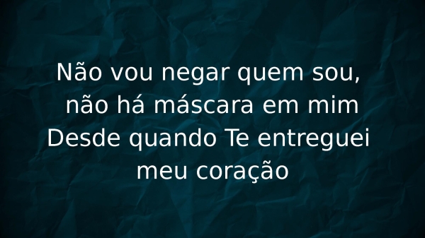 - Não vou negar quem sou, não há máscara em mimDesde quando Te entreguei meu coração