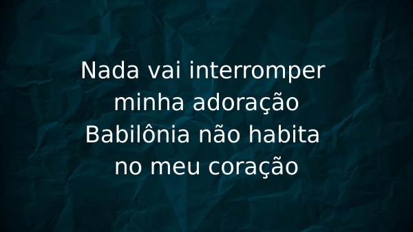 - Nada vai interromper minha adoraçãoBabilônia não habita no meu coração