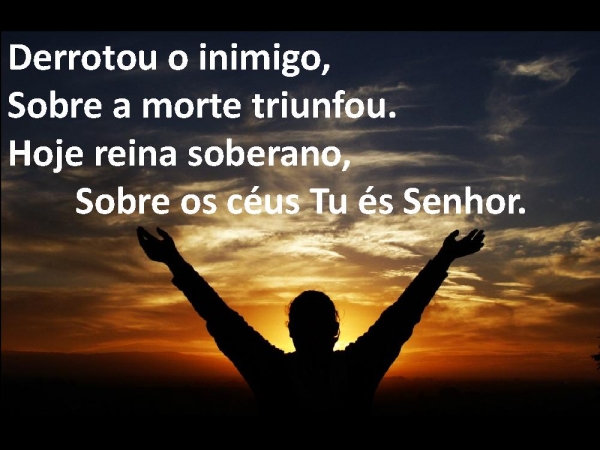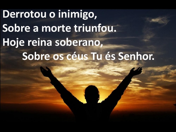 - Derrotou o inimigo, Sobre a morte triunfou. Hoje reina soberano, Sobre os céus Tu és Senhor.
