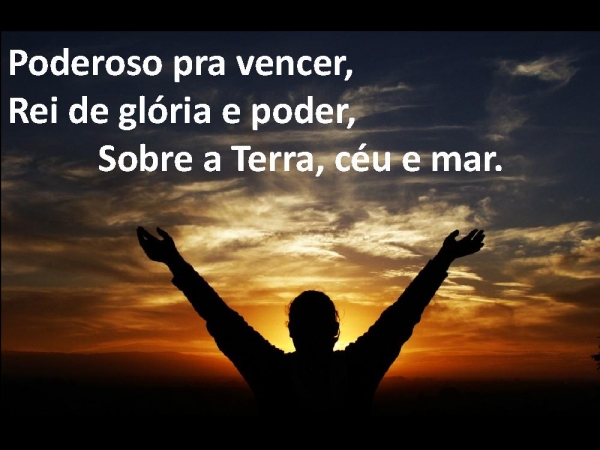 - Poderoso pra vencer, Rei de glória e poder, Sobre a Terra, céu e mar.