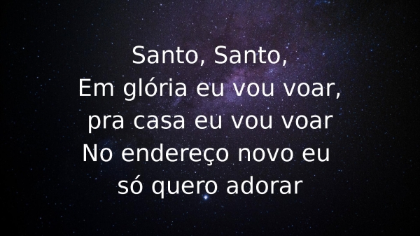 - Santo, Santo,Em glória eu vou voar,pra casa eu vou voarNo endereço novo eu só quero adorar