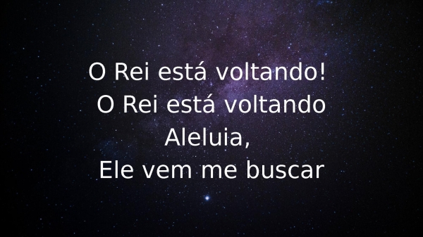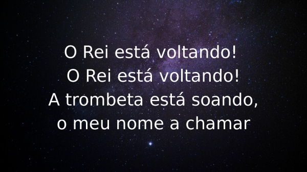 - O Rei está voltando! O Rei está voltando!A trombeta está soando,o meu nome a chamar