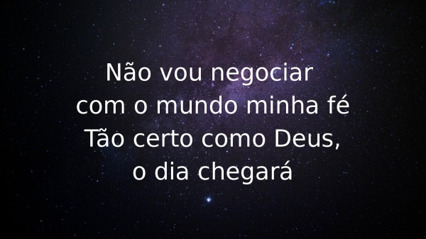 - Não vou negociar com o mundo minha féTão certo como Deus,o dia chegará