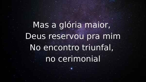 - Mas a glória maior, Deus reservou pra mimNo encontro triunfal, no cerimonial