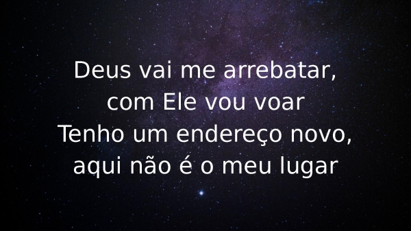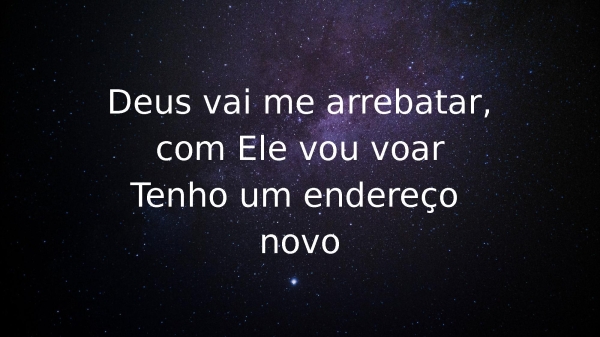 - Deus vai me arrebatar,com Ele vou voarTenho um endereço novo,aqui não é o meu lugar