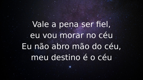 - Vale a pena ser fiel,eu vou morar no céuEu não abro mão do céu,meu destino é o céu