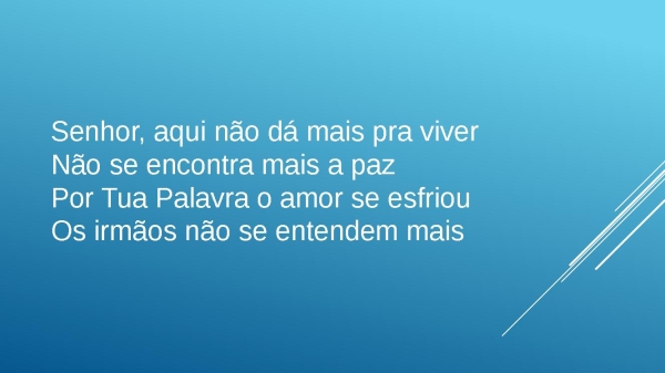 - Senhor, aqui não dá mais pra viverNão se encontra mais a pazPor Tua Palavra o amor se esfriouOs irmãos não se entendem mais