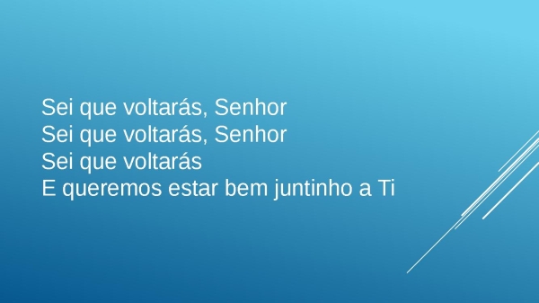 - Sei que voltarás, SenhorSei que voltarás, SenhorSei que voltarásE queremos estar bem juntinho a Ti