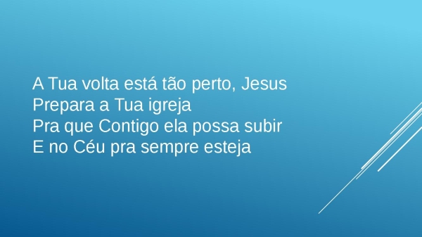 - A Tua volta está tão perto, JesusPrepara a Tua igrejaPra que Contigo ela possa subirE no Céu pra sempre esteja