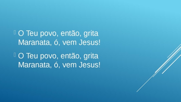 - O Teu povo, então, gritaMaranata, ó, vem Jesus!O Teu povo, então, gritaMaranata, ó, vem Jesus!