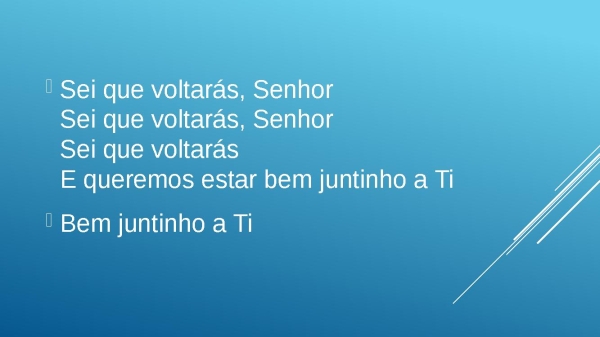 - Sei que voltarás, SenhorSei que voltarás, SenhorSei que voltarásE queremos estar bem juntinho a TiBem juntinho a Ti
