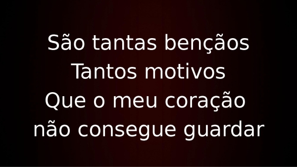 - São tantas bençãosTantos motivosQue o meu coração não consegue guardar