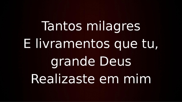 - Tantos milagresE livramentos que tu,grande DeusRealizaste em mim