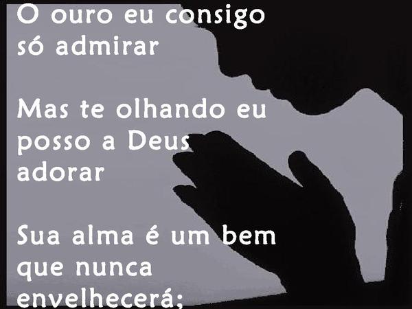 - O ouro eu consigo só admirarMas te olhando eu posso a Deus adorarSua alma é um bem que nunca envelhecerá;