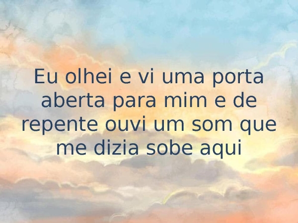 - Eu olhei e vi uma porta aberta para mim e de repente ouvi um som que me dizia sobe aqui