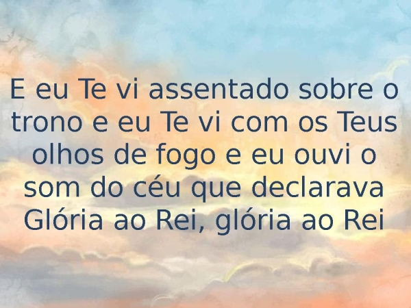 - E eu Te vi assentado sobre o trono e eu Te vi com os Teus olhos de fogo e eu ouvi o som do céu que declaravaGlória ao Rei, glória ao Rei